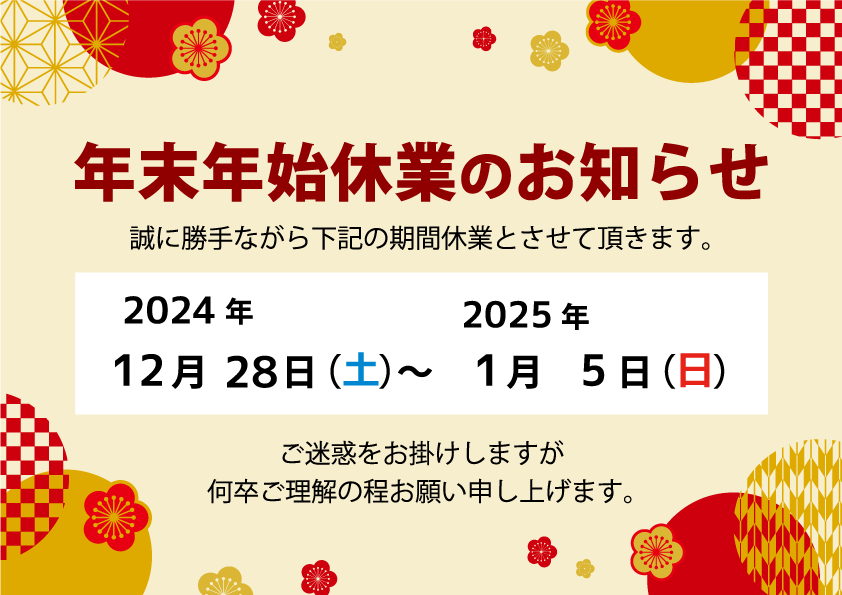 年末年始休業のご案内